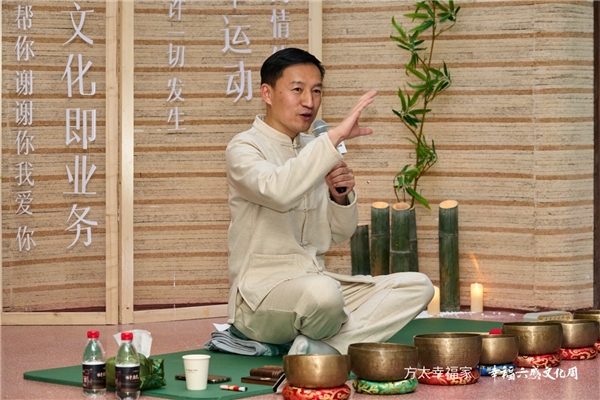 在听觉专场,颂钵疗愈师王俊翔导师则是以颂钵的高频能量带领大家深度放松,回归当下,于美妙空灵的颂钵声中感受心灵共振的治愈力量。